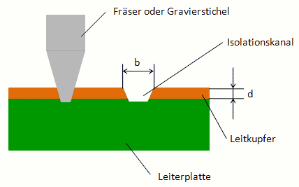 an deren Aussenkontur ein isolierender Kanal gefräst wird.
