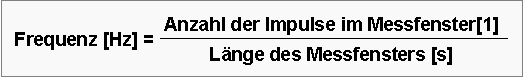Messfrequenz und der Anzahl Impulse im Messfenster und er Dauer