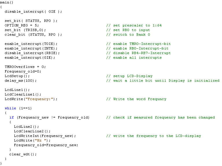 wie man mit einem PIC16F84 eine einfach Frequenzmessung realisieren