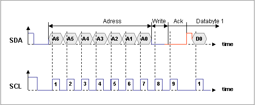 - beide Leitungen SDA und SCL liegen im Ruhezustand auf high.