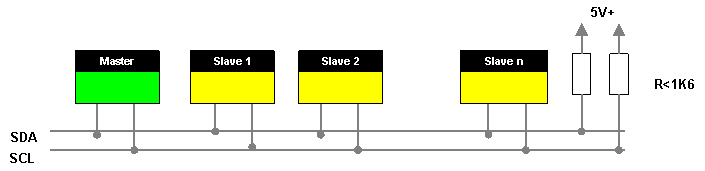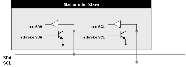 Der I2C-Bus arbeitet mit open-Collector Treibern. D.h. jedes Gerät